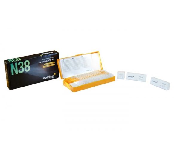 - Set slajdova N38 NG već sadrži potpuno pripremljene uzorke biomaterijala, tako da možete više vremena provesti proučavajući ih. Set sadrži i niz praznih pločica i pokrovnih stakala, što vam omogućava da pripremite sopstvene mikroskopske slajdove. Prazne pločice i pokrovna stakla su napravljena od visoko transparentnog stakla i pružaju najudobnija opažanja, bez odsjaja ili izobličenja.