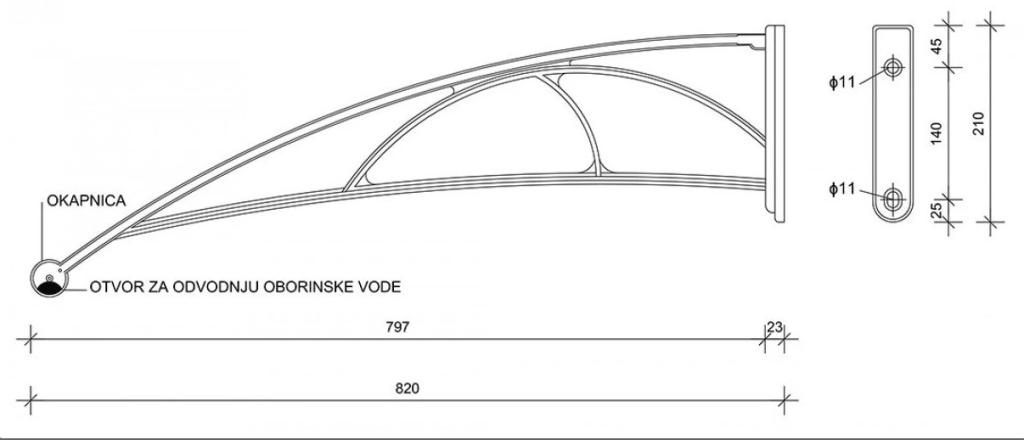 NAPOMENA: Nadstrešnica dolazi u delovima i potrebno je sastavljanje pre ugradnje.
