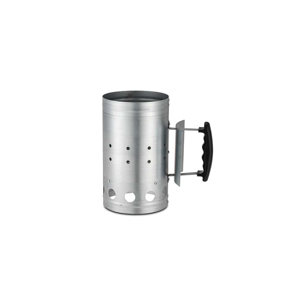 - Jednostavno se stavi upaljač ispod posude i napuni se briketima ili ugljem.