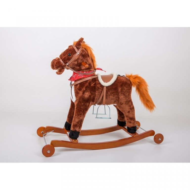 - Konj je opremljen sa ručkama za držanje, tapaciran je i ukrašen sa realnim sedlom.