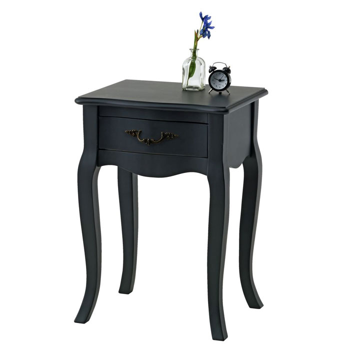 Noćni ormarić od brušene, crno lakirane masivne borovine, sa jednom fiokom