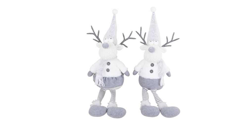 Novogodišnji ukras irvas koji sedi, sive boje, 2 dizajna, 65 cm