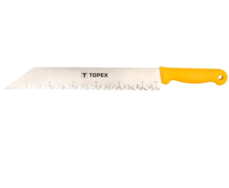 - Nož za mineralnu vunu dužine 480 mm. Dizajniran za sečenje mineralne vune, tvrde pene i polistirena. Oštrica od 335 mm sa zupcima na jednoj strani ima metričku skalu. Ergonomska drška napravljena je od tvrde plastike.