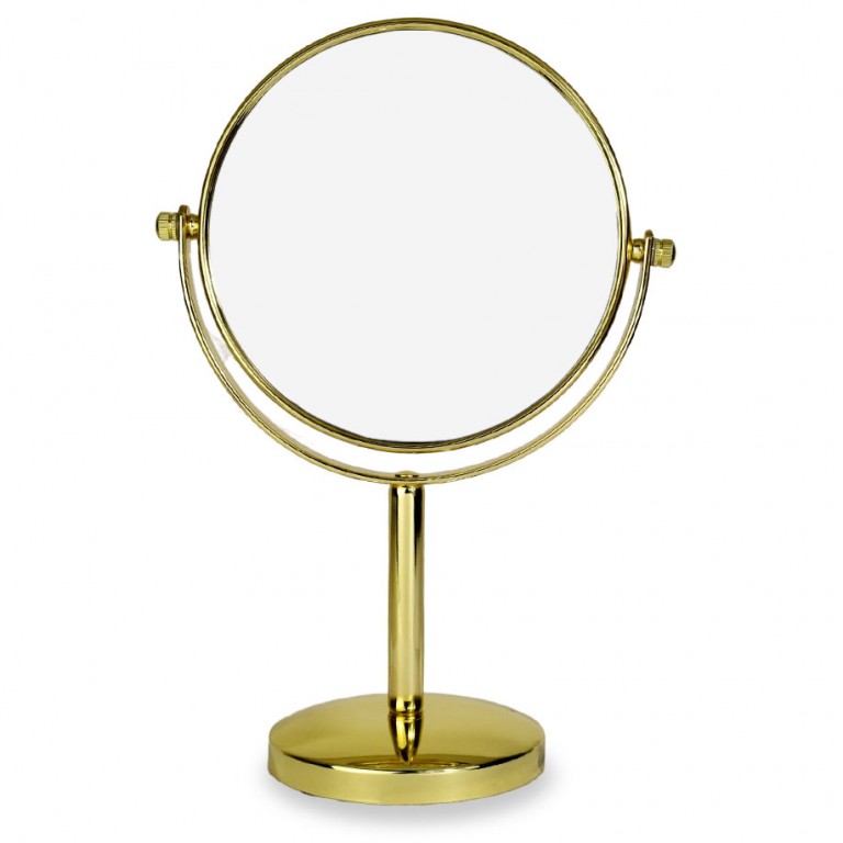 - Ogledalo stono zlatno. Uveličavajuća strana ogledala je x7. Pakovano je u poklon kutiju. U galeriji fotografija su vam prikazane tačne dimenzije.