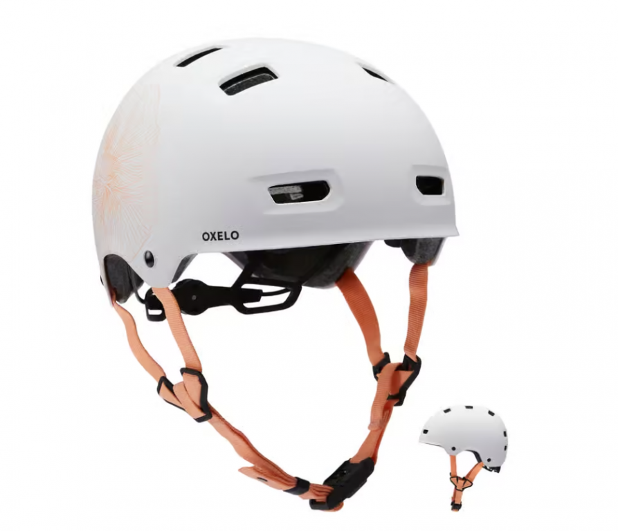 Oxelo skejtbord kaciga bela sa cvetnom šarom