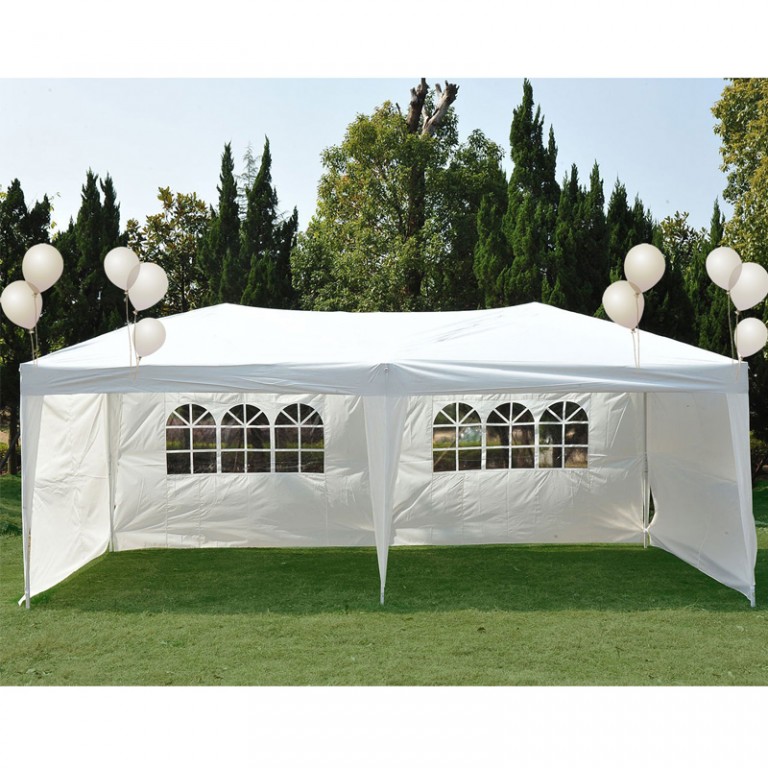 Paviljon tenda sa 6 bočnih panela pravi je izbor ukoliko vam treba zaštita od kiše ili sunca u vašem dvorištu. Praktičan za upotrebu može se lako postaviti i onda razmontirati kada želite da ga odložite. Dimenzije paviljona su 6 x 3 m, visina u najvišem delu je ~250 cm. Paviljon dolazi sa 6 bočnih panela, 4 sa prozorima i 2 bez prozora. Stranice (panele) možete kotistiti po potrebi, jednostavno ih je skinuti ili urolati. Možete sa stranicama napraviti raspored koji Vama odgovara najviše zbog prozora. Ovaj paviljon možete koristiti i za proslave rođendana ili drugih svečanosti.