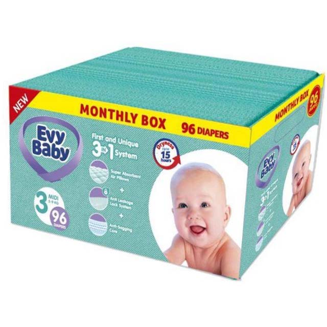 Pelene za bebe Evy baby Box 3 Midi 5 - 9kg, 96kom, 3u1