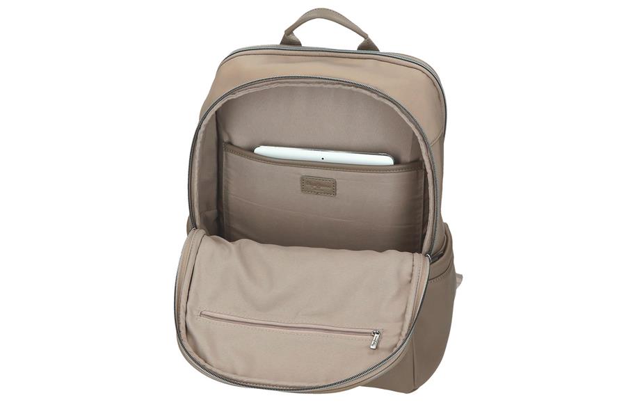 Ranac osmišljen za one koji žele funkcionalnost, sigurnost i udobnost u svakodnevnom ritmu. Izrađen od izdržljivog poliestera sa detaljima od eko kože, kombinuje moderan izgled sa pametno organizovanim prostorom. Poseban odeljak sa zadnje strane omogućava direktan pristup postavljenoj pregradi za laptop i tablet, pružajući dodatnu zaštitu i diskreciju. Prostrani glavni deo nudi dovoljno mesta za knjige, garderobu i druge potrepštine, uz dodatnu postavu koja štiti sadržaj. Široke, ergonomski oblikovane i postavljene naramenice savršeno se prilagođavaju leđima, dok zadnja traka omogućava lako pričvršćivanje na kofer — idealno za putovanja, posao ili dinamične gradske dane.