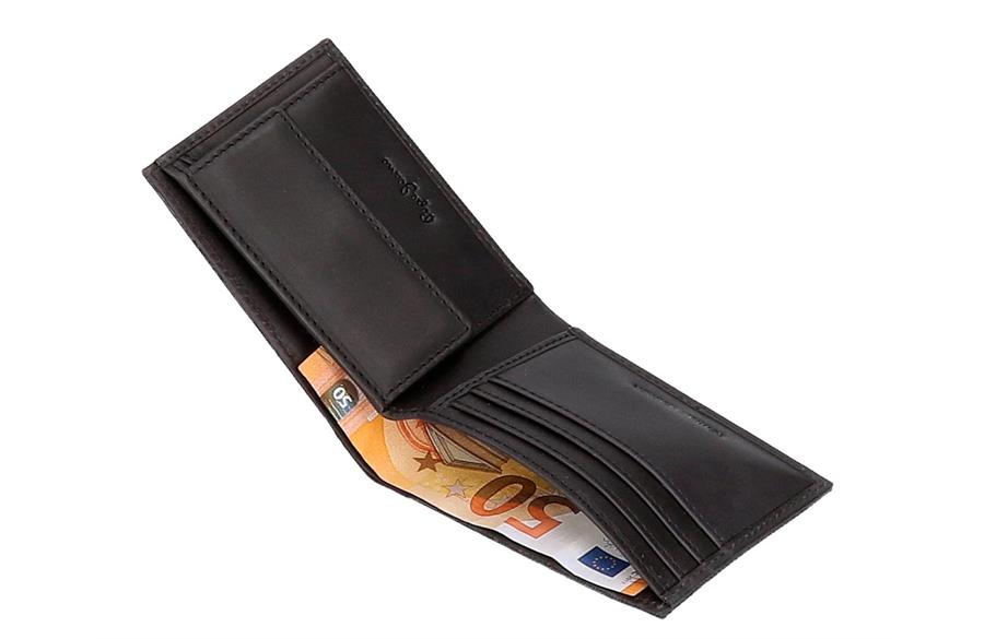 Novčanik ima šest pregrada za čuvanje kartica, jedan odeljak za lična dokumenta i poseban prostor za novčanice. Sadrži poseban prostor sa kopčom na klik. Specijalan sistem za zaštitu kartica RFID, blokira signale neovlašćenih uređaja za skeniranje radiofrekvencija.