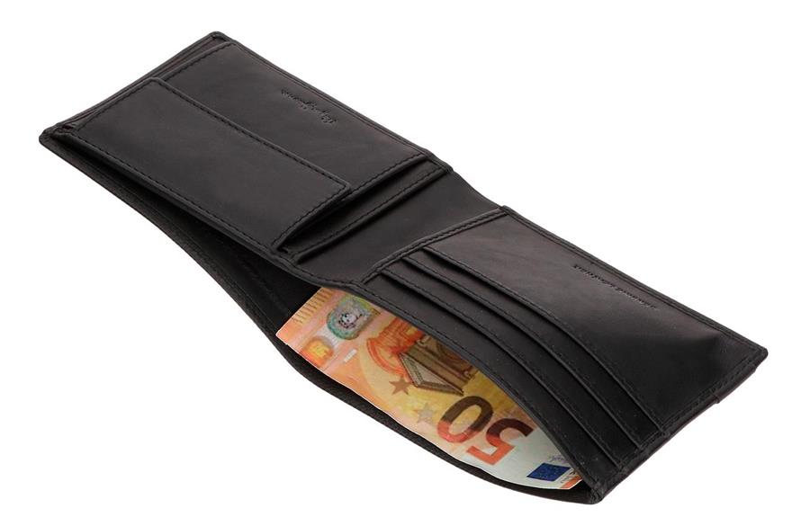 Novčanik ima šest pregrada za čuvanje kartica, jedan odeljak za lična dokumenta i poseban prostor za novčanice. Sadrži poseban prostor sa kopčom na klik. Specijalan sistem za zaštitu kartica RFID, blokira signale neovlašćenih uređaja za skeniranje radiofrekvencija.