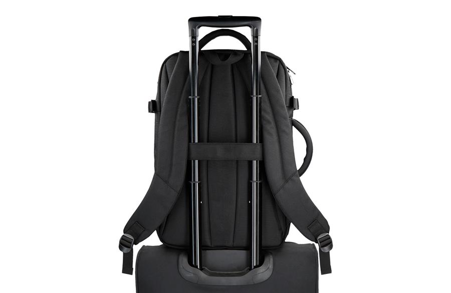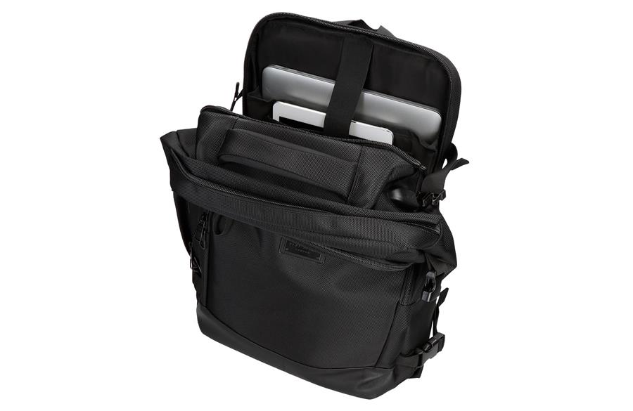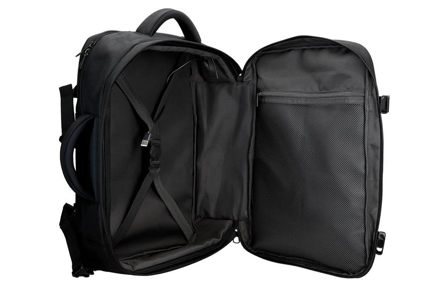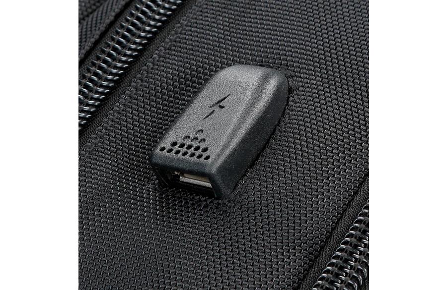 Ranac poseduje glavni odeljak sa praktičnim unutrašnjim prostorom koji se sastoji od dva dela, jedan sa rajsferšlusom i drugi sa elastičnim trakama za pričvršćivanje. Opremljen je integrisanim USB portom sa kablom za povezivanje sa eksternom baterijom. Zadnji odeljak je specifično dizajniran za laptop do 15,6 inča i tablet. Prednji odeljak sadrži džep i unutrašnji organizator za čuvanje gedžeta ili ličnih stvari za kraće putovanje.