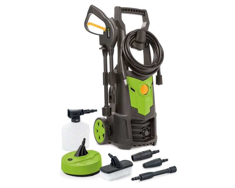 - Pakovanje Visokopritisni pištolj, Podesiva mlaznica, Turbo mlaznica, Produžetak mlaznice, Četka za auto, Boca za pranje šamponom, Adapter priključak za baštensko crevo 1/2", Čistač površina, Igla za čišćenje