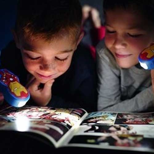 Baterijska. dečija lampa Iron Man emituje svetlo koje detetu pomaže noću ili dok se igra u mraku.