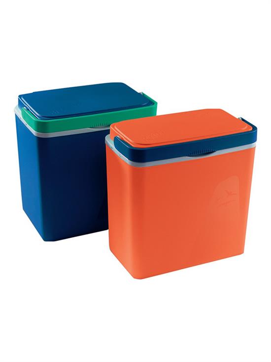 - Piknik ručni frižider zapremine 25l, dimenzija 390 x 230 x 400 (mm), plave, zelene i narandžaste boje.