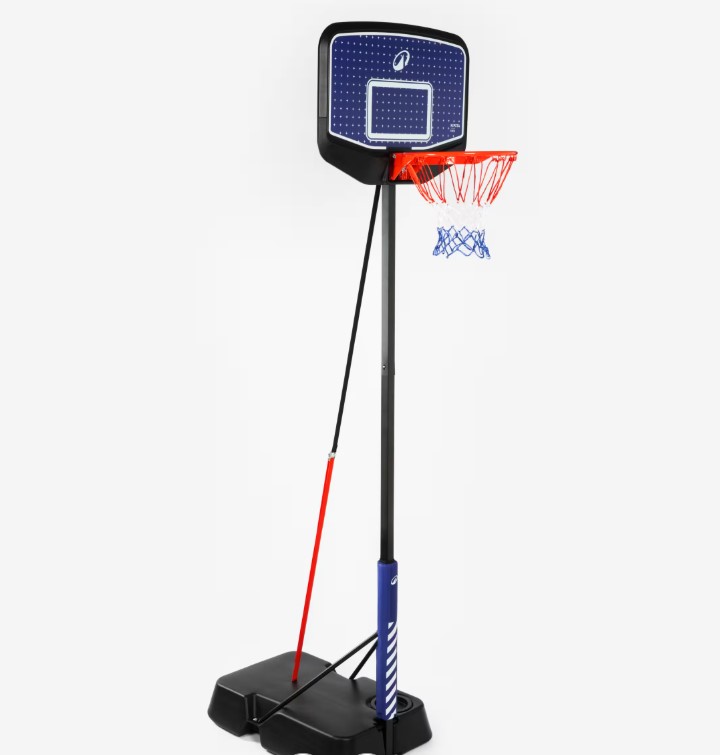 Baza ima kapacitet od 47 l: napunjen vodom ili (po mogućnosti) peskom, pruža do 58 kg protivteže, što čini koš veoma stabilnim tokom igre. Iako toplo preporučujemo da deca ne vise sa obruča, možete ih pustiti da se mirno igraju.