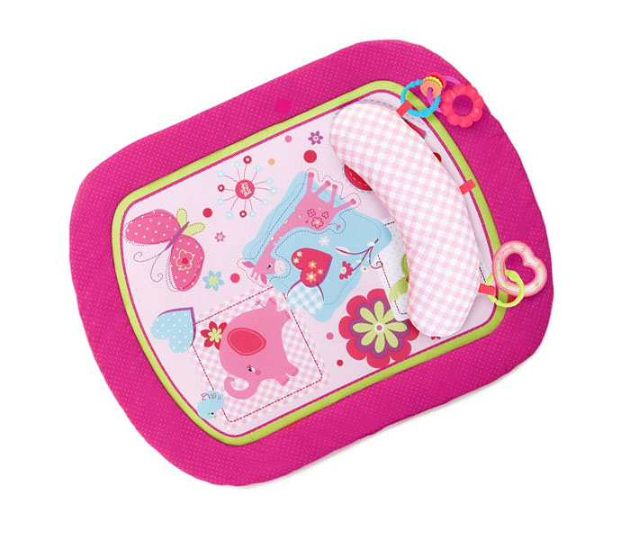 Mekana, postavljena prostirka ohrabruje igru na stomaku koja je vrlo važna za razvoj krupne motorike u prvoj godini bebinog života. U nežnim ružičastim tonovima sa životinjskim likovima koji će privući bebinu pažnju.