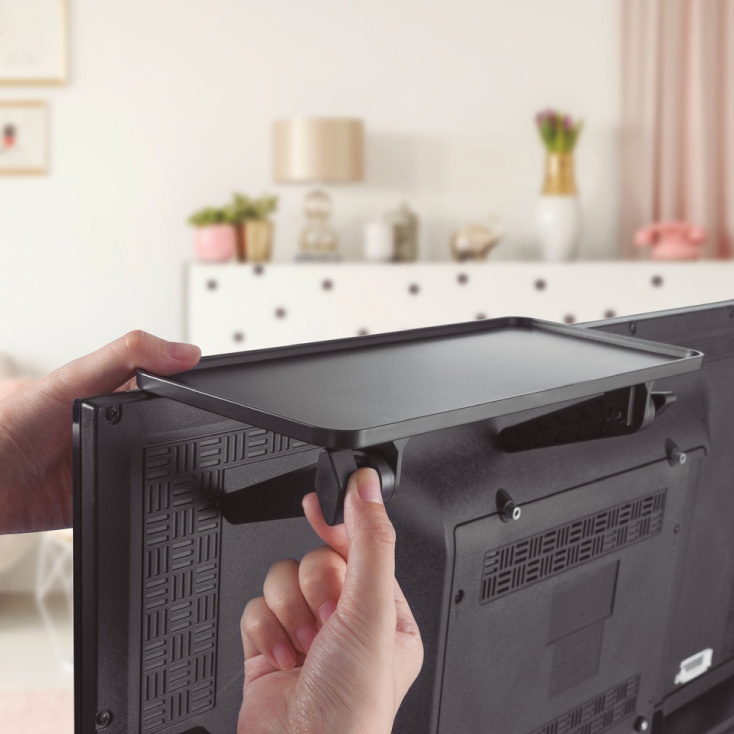 Ova inovativna polica pruža rešenje za držanje uređaja iznad televizora, kao što su ruteri, daljinski upravljači i mnogi drugi dodaci