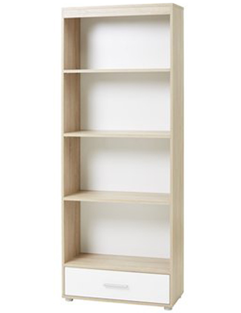 Veoma kvalitetna i univerzalna polica Dandar u kombinaciji boja brušenog hrasta i bele boje sa jednom fiokom.