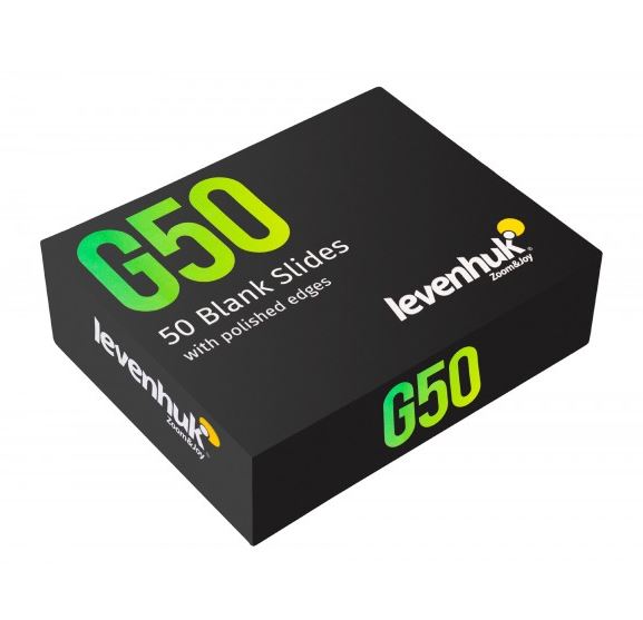 - Levenhuk G50 prazne pločice možete koristiti za pravljenje spostvenih preparata za dalja istraživanja. Ove prazne predmetne pločice su napravljeni od visokokvalitetnog stakla i visoko su transparentne. Zbog njihove ravnomerne debljine, možete ih koristiti i za velike uzorke bez potrebe za naknadnim finim podešavanjima fokusa.