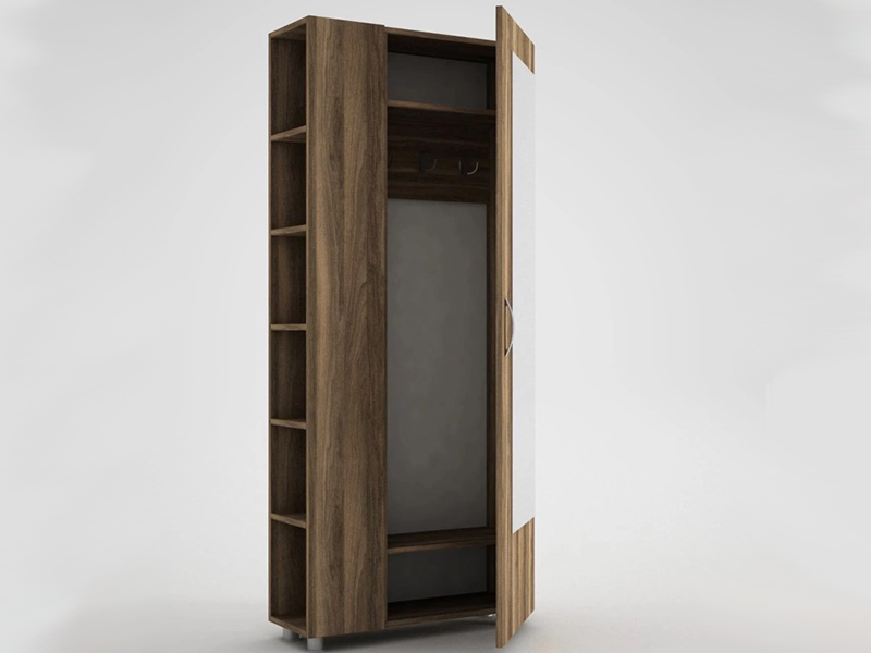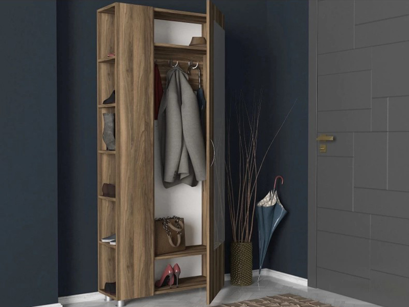 Predsoblje Meyra orah ogledalo * Dimenzije : Š:80 cm D:28,6 cm V:185 cm Predsoblje Meyra orah ogledalo izrađeno od kvalitetnog univera 18 mm obloženog melaminskom folijom u dezenu oraha abs zaštitna traka na ivicama. Cipelarnik,čiviluk i ogledalo u ergonomskom komadu nameštaja uklopiće se i lako kombinovati u svakom predsoblju,hodniku,.... U okvirima E1 standarda materijal ne sadrži kancerogene supstance.