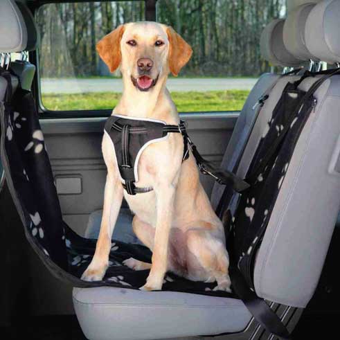 - Prorezi u prekrivaču omogućavaju vezivanje psa sigurnosnim pojasom.