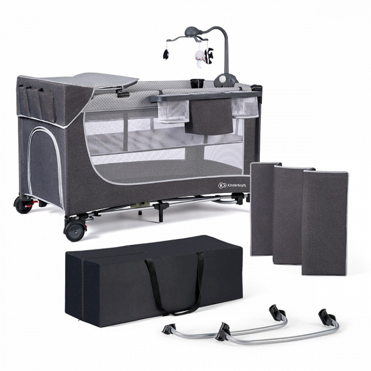 Prenosivi krevetac Leody grey sa dodacima Kinderkraft