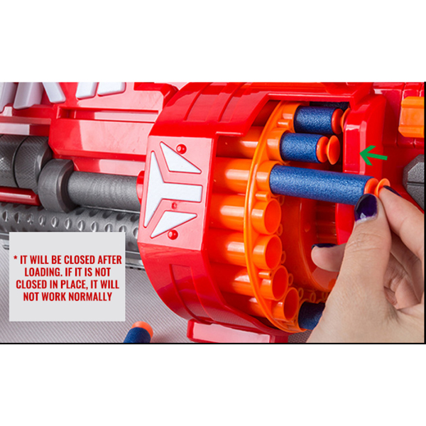 - Radi na baterije i automatski rotira i puni cev, tako da ćeš brzo biti spreman za sledećeg neprijatelja