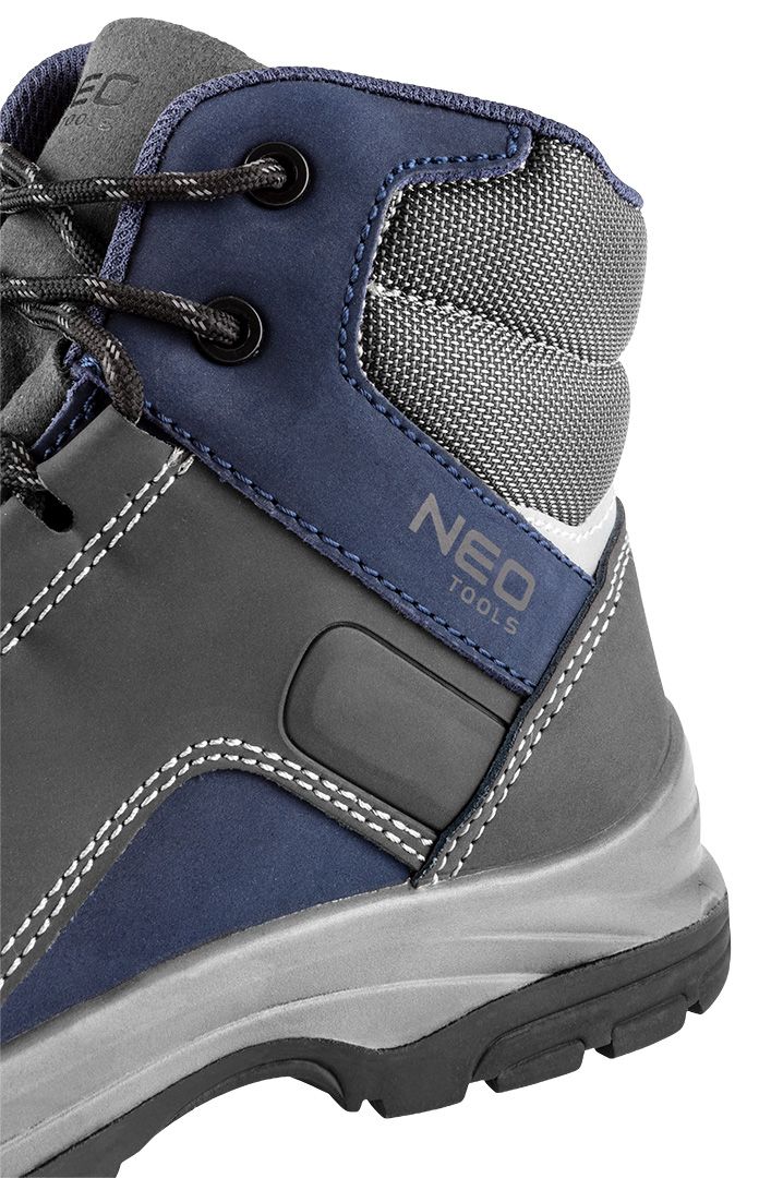 Profesionalne radne čizme NEO 82-750, klasa O2 SRC, štite stopala od hladnoće, prodiranja i upijanja vode. Obuća je veoma udobna, napravljena je od visokokvalitetne nubuk kože (koja podseća na antilop) sa unutrašnjom mrežicom u završnom sloju. Đon je napravljen od materijala koji daje mekoću i udobnost gornjem sloju, a donji sloj štiti đon od habanja. Đon je otporan na mazut. Čizme savršeno štite zatvoreni deo pete (apsorpcija energije). Pertle sa reflektujućim koncem - upletenim da poboljšaju vidljivost korisnika. Dostupne veličine 39-47. CE sertifikat, usklađenost sa EN:ISO 20347:2012.