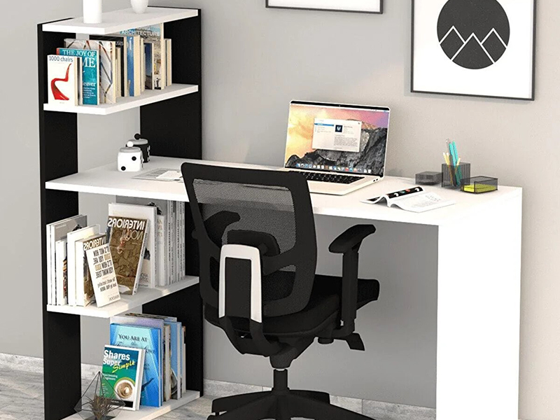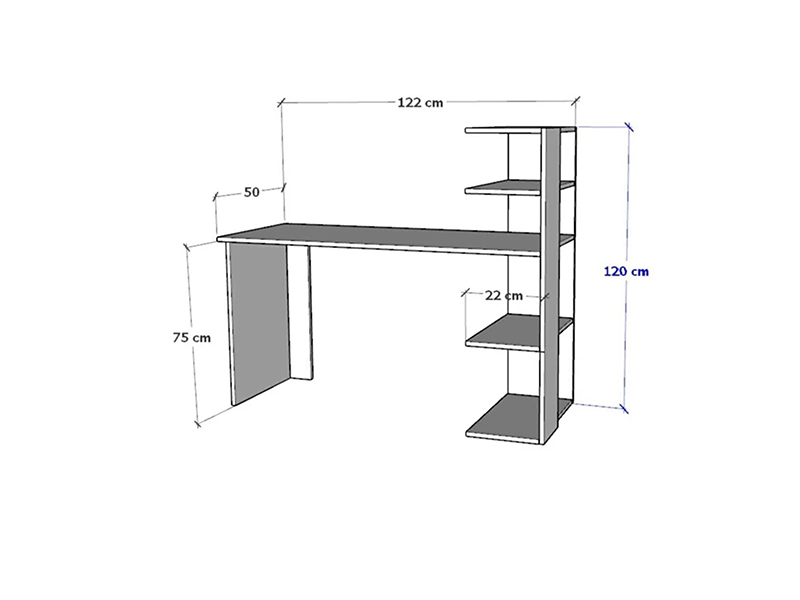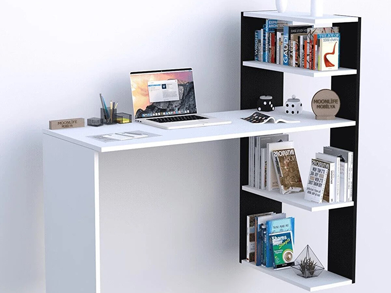 Radni sto sa policom crno beli * Dimenzije: Š:122cm D:50cm V:75/120cm Radni sto sa policom crno beli izrađen je od visokokvalitetnog univera debljine 18 mm obložen melaminskom folijom u beloj i crnoj boji. Ima savremen dizajn ,prostor za odlaganje knjiga kao i ostalih potrebnih stvari. Proizvod je napravljen od E1 sertifikovanih sirovina koje ne sadrže kancerogene supstance.
