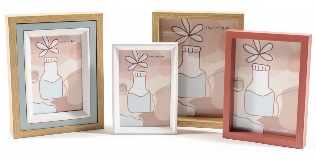 - Set od tri rama, dostupan u dve kombinacije boja (ram 13x18 može biti u golubije plavoj ili koralnoj boji) . Tri rama, za fotografije dimenzija: 10x15; 13x18 i 15x20cm.
