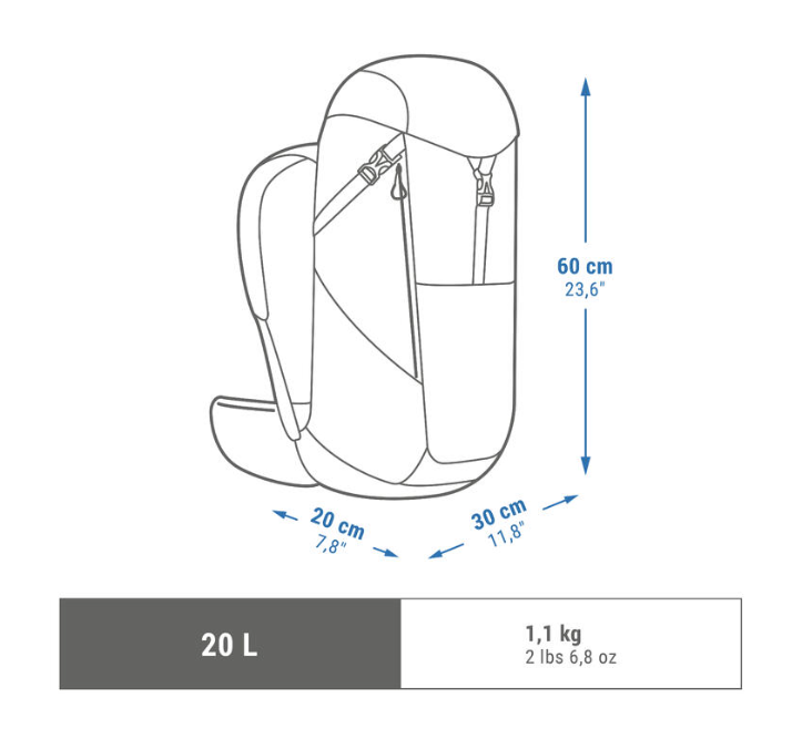 - 20 l. Dimenzije: 60 cm x 30 cm x 20 cm. Pogodan za lični prtljag