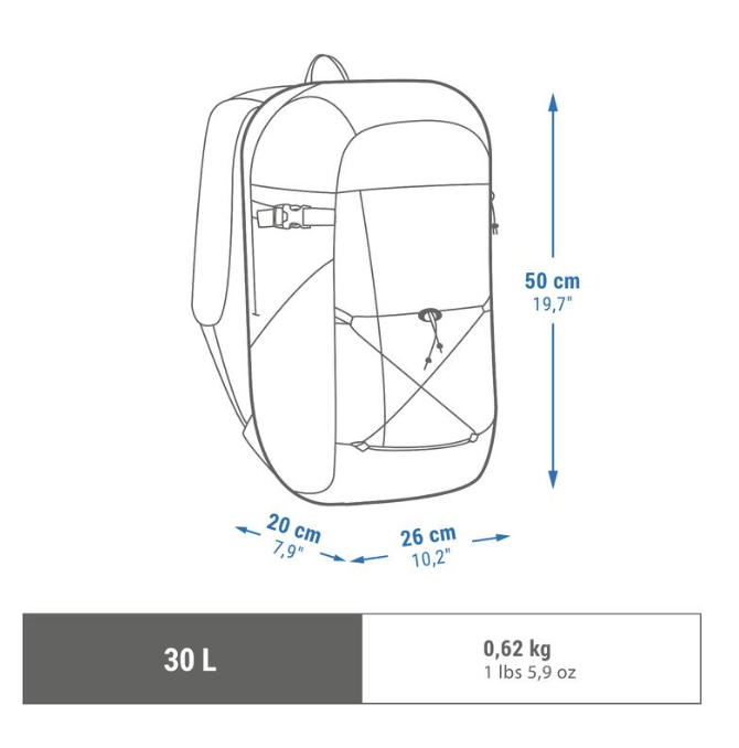 - Zapremina: 30 litara | Težina: 620 g | Dimenzije: 50 x 26 x 20 cm