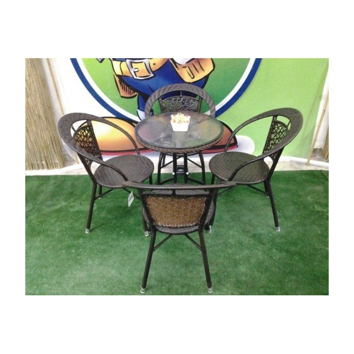 Baštenska garnitura od ratana. Komplet sto i 4 stolice, boja braon.