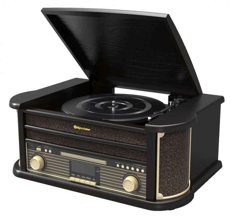 Retro radio sa gramofonom Roadstar HIF1898D-BT je elegantan, drveni radio sa crnim, sjajnim premazom. Ako vam nedostaje magija analognog zvuka, ili posedujete kolekciju prašnjavih, nekorišćenih LP-ova, retro radio sa gramofonom Roadstar je pravi izbor za vas. Pored svoje primarne funkcije, retro radio sa gramofonom može da reprodukuje i CD/MP3 datoteke sa pametnog telefona, ili tableta kada su povezani putem bluetooth tehnologije, USB porta, ili Aux in ulaza. DAB/DAB+/FM tjuneri retro radija sa gramofonom služe za prijem radio stanica. Savršen zvuk retro radija sa gramofonom može biti postavljen na 33-45-78 rpm obrtaja, pa može reprodukovati širok spektar snimaka, od novijih, pa do starijih singlova. Informacije o mediju koji se trenutno reprodukuje prikazuju se na digitalnom LCD displeju. Retro radio sa gramofonom je opremljen sa dva zvučnika od 5 W, koji daju kvalitetan zvuk.
