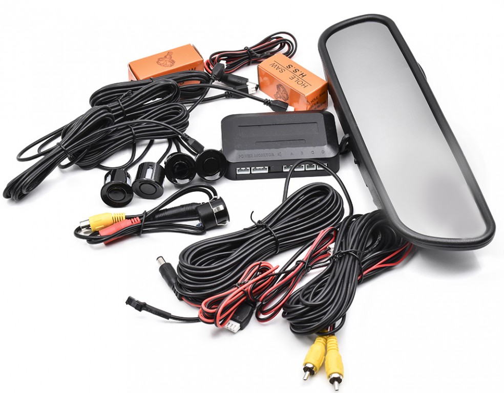 - Ova jedinica dolazi sa 4,3-inčnim LCD monitorom u boji sa ugrađenim zvukom upozorenja, kamerom u boji sa vodootpornim kućištem, 4 senzora za parkiranje, centralnom kontrolnom kutijom i svom potrebnom dodatnom opremom.