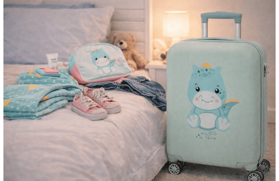 Dostupan u razigranim Happy Pets dizajnima – dinosaurus, maca, jednorog i meda – ovaj kofer brzo postaje omiljeni saputnik na svakom putovanju.