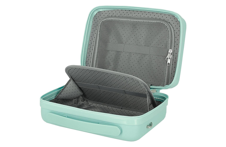 Beauty case sadrži dva odeljka, ogledalo i džep za poboljšanje organizacije. Poseduje traku za prilagođavanje Vaše toaletne torbe za nošenje zakačene za kofer a možete je i nositi na ramenu, zahvaljujući kaišu koga možete podesiti.