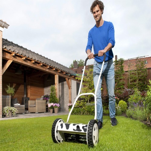 Ručna kosilica za travu neobičnog izgleda sa cilindrom od 5 sečiva biće vam od velike pomoći prilikom sređivanja vašeg travnjaka. Ova kosilica za travu ima širinu košenja od 30 cm i podesivu visinu košenja. Sečiva su samo-oštreća što podrazumeva da nikakvo dodatno oštrenje nije potrebno. Ručka sa mekanim rukohvatom od pene obezbeđuje komforan, siguran hvat i dodatni radni komfor.