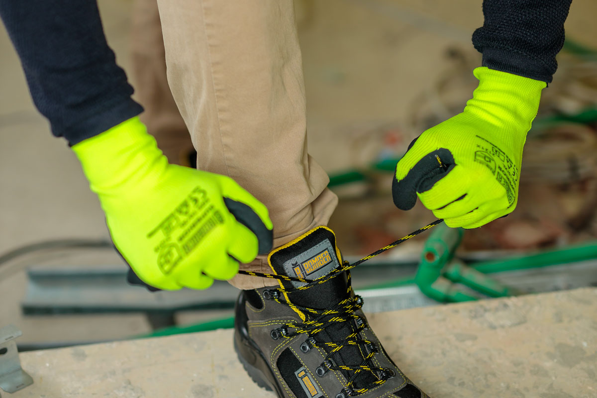 Pletene rukavice od žutog poliestera, presvučene na dlanu i prstima slojem penastog lateksa crne boje. Ove rukavice imaju izuzetno pouzdan hvat. - Veličina: 11 Brend: Bomber
