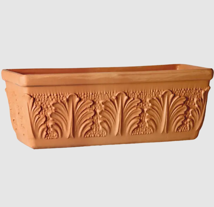 - Italijanska keramička saksija "ROMA" sa dekorativnim ornamentima listića po zidovima sa spoljašnje strane. Preporučuje se za podprozorske prostore dimenzija 52x22cm