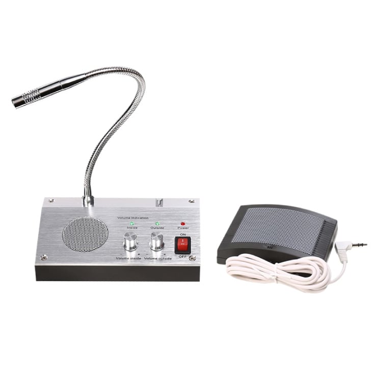 Šalterski audio interfon namenjen za banke, kompanije koje se bave obezbeđenjem, bolnice kao i za sve ostale institucije u kojima postoji neprobojno staklo Glavna jedinica ima aluminijumsko kućište, a jedinica za proširenje ima ugrađen zvučnik Sistem se povezuje jednostavno po principu „uradi sam“ Poseduje zvučnik najvišeg kvaliteta i mikrofon visoke osetljivosti Mikrofon smešten u metalnoj cevi je idealan za šaltersku ugradnju i dvosmernu komunikaciju Glas koji je reprodukovan ovim sistemom je jasan i potpuno prirodan Potenciometrima se vrši kontrola jačine zvuka Razgovor se može snimati preko konektora za snimanje Šalterski audio interfon namenjen za banke, kompanije koje se bave obezbeđenjem, bolnice kao i za sve ostale institucije u kojima postoji neprobojno staklo Glavna jedinica ima aluminijumsko kućište, a jedinica za proširenje ima ugrađen zvučnik Sistem se povezuje jednostavno po principu „uradi sam“ Poseduje zvučnik najvišeg kvaliteta i mikrofon visoke osetljivosti Mikrofon smešten u metalnoj cevi je idealan za šaltersku ugradnju i dvosmernu komunikaciju Glas koji je reprodukovan ovim sistemom je jasan i potpuno prirodan Potenciometrima se vrši kontrola jačine zvuka Razgovor se može snimati preko konektora za snimanje