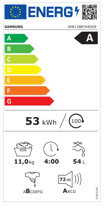 - Potrošnja električne energije: 53 kWh kroz 100 ciklusa