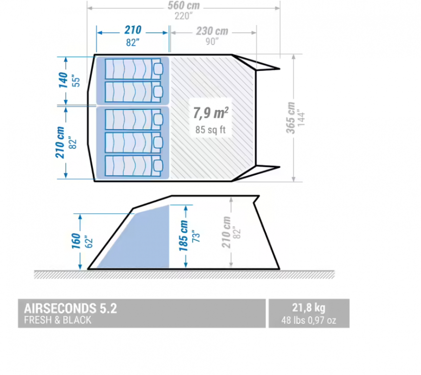 - Naši dizajneri za kampovanje osmislili su ovaj šator na naduvavanje Air Seconds 5.2 F&B za petoro kampera koji žele dve odvojene spavaonice i prostrani dnevni boravak.