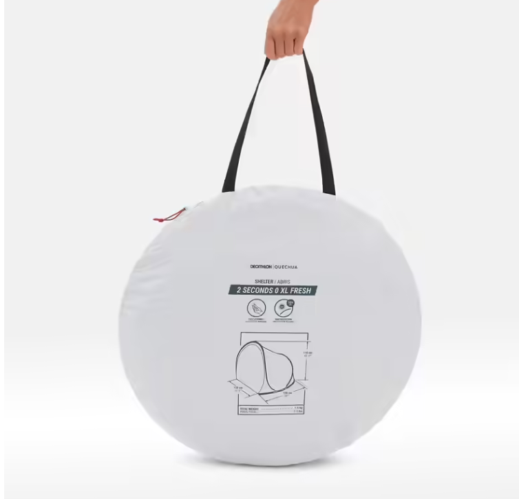- Naši dizajneri za kampovanje dizajnirali su ovo sklonište 2 Seconds Fresh za 2 odrasle osobe. Štiti vas od sunčevih zraka, laganog vetra i izolacija je od zemlje.