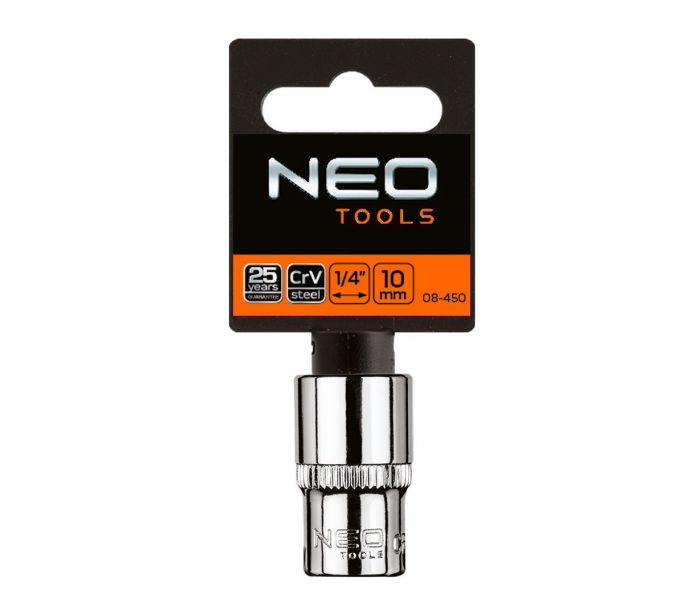Šestougaona nasadna glava NEO TOOLS od 1/4 " napravljena je od izdržljivog hrom-vanadijum čelika. Narezana površina poboljšava prijanjanje nasadne glave. Pouzdanost proizvoda potvrđena je 25-godišnjom garancijom. Brend NEO ispunjava očekivanja profesionalaca.