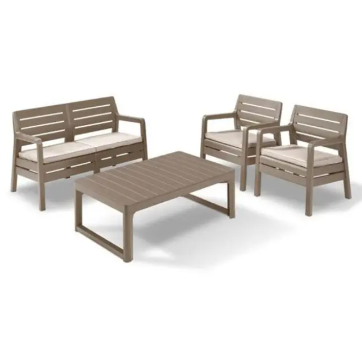 - Baštenska garnitura "DELANO" u cappuccino boji je izrađena od trajnog rezolit materijala, robusan i čvrst ali u isto vreme veoma lagan i praktičan za premeštanje. Dizajn koji pruža visoku udobnost.