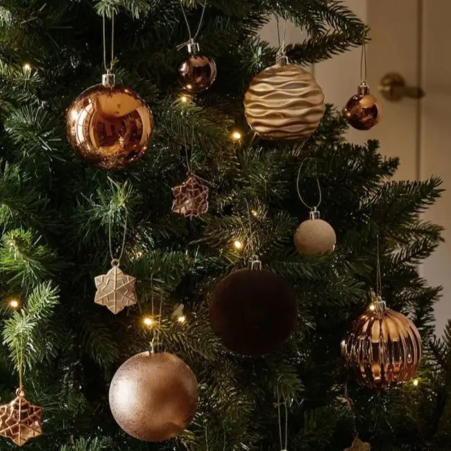 - Set novogodišnjih kuglica za sjajnu dekoraciju vaše jelke u boji bronze.