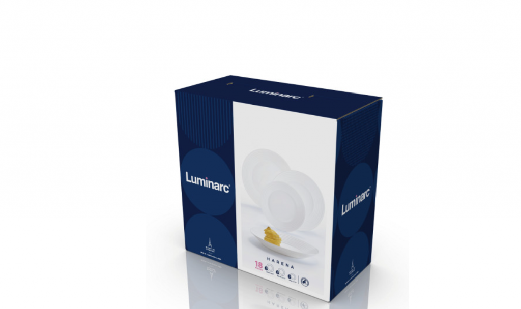 - - Herena set za ručavanje se sastoji od 18 delova, 6 plitkih tanjira 25cm, 6 dubokih tanjira 235 cm i 6 dezertnih tanjira 19cm.
