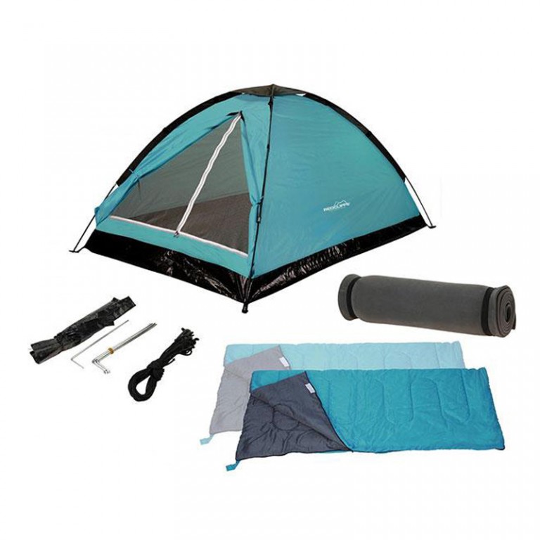 Ovaj kompletan set je idealan za kampovanje. Za konkurentnu cenu imate sve potrepštine za kampovanje u praktičnoj torbi za nošenje koju možete svuda poneti sa sobom. Bez obzira jeste li u kampu ili prolazite kroz šumu, uvek se možete osloniti na ovaj čvrsti set. Komplet se sastoji od 1 šatora, 2 vreće za spavanje, 2 prostirke za spavanje, materijala za montažu i torbe za nošenje. Šator ima površinu tla 120 x 200 cmi visinu od 100 cm. Zbog toga je pogodan za 2 osobe. Vreće za spavanje su veličine 180 x 74, a prostirke su 180 x 50 cmi debljine 7 mm.
