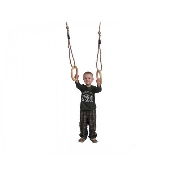 Materijal: Drvo (rukohvat) / pocinkovani čelik (prstenovi i osmice) / PP plastika (uže)
